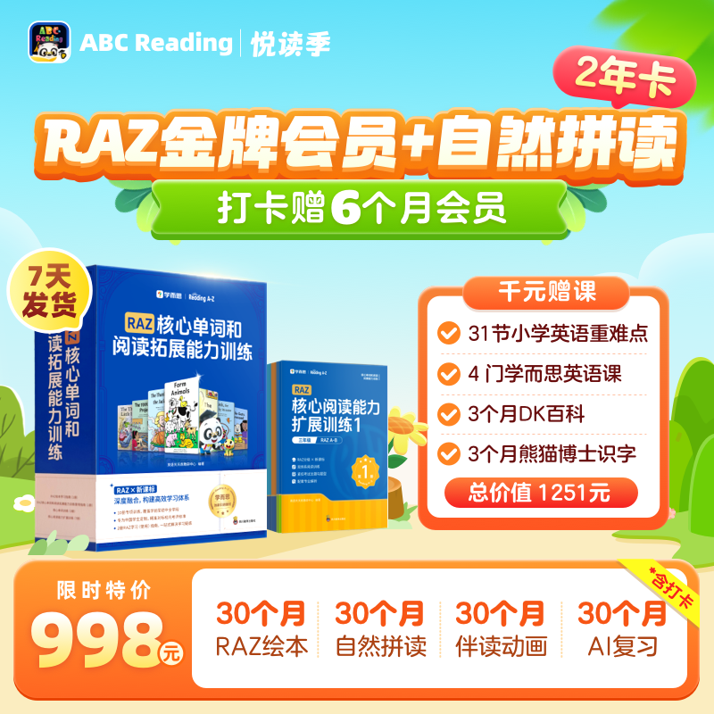 【 🔥千元赠课免费送,完成打卡最高再送6个月!】【启蒙套餐】ABCReading金牌会员+自然拼读联合【2年卡】:上新700+RAZ绘本+AI复习功能,解锁2000+原版绘本,畅享850节伴读动画盛宴,闭环自拼404节高效学习,让孩子的英语学习之旅更加精彩!ABCreading/ABC reading/ABC Reading